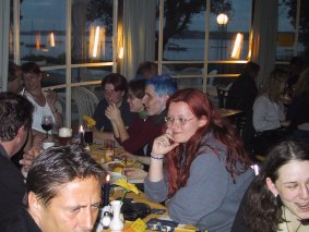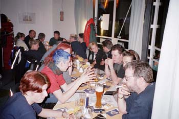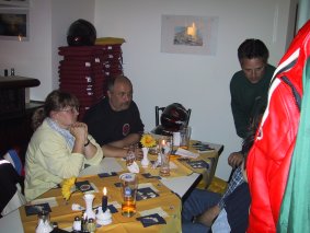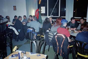 Nachdem der Seepavillon schließen wollte (aber wenn wir wieder kommen, mach der Chef geschlossene Gesellschaft mit open end, sagte er zumindest:o)), gingen wir zur abschließenden Tourenplanung über, nämlich zum "Abzappen", also Muskellockern in Form von Tanzen *sfg in die Musikkneipe/Disco "bearwein" im Hause Seefelder, mitten im Ort.