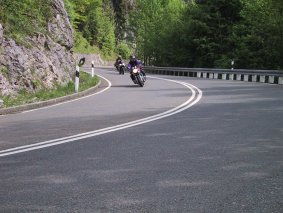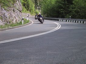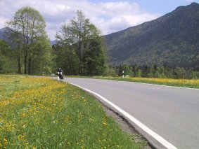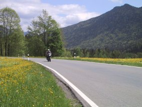 Vom Walchensee führt die Straße recht kurvenreich und stark