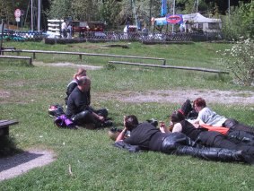 Kettenpflege fuhren Ducs, Piripiri und ich zum Haupttreffpunkt am Campingplatz.